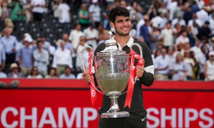 Carlos Alcaraz deu mais um importante passo em sua caminhada para voltar ao topo do ranking do tênis. Neste domingo (22), em grande batalha com o checo Jiri Lehecka, o número 2 do mundo conquistou seu terceiro troféu seguido, o quinto na temporada e o 21º da carreira, ao ganhar a decisão do Torneio de Queens, em Londres, por 2 sets a 1, com parciais de: 7/5, 6/7 (5/7) e 6/2 após 2h10. Essa é a segunda taça na grana que o espalho leva, a primeira foi em 2023. Esse novo título deixa o Alcaraz ainda mais empolgado para a defesa do título em Wimbledon, a partir do dia 30. Com a dura vitória em Queens, Alcaraz amplia sua invencibilidade pessoal para 18 jogos Ele vinha de conquistas no Masters 1000 de Roma e em Roland Garros. Apenas na grama, já são 12 triunfos seguidos.