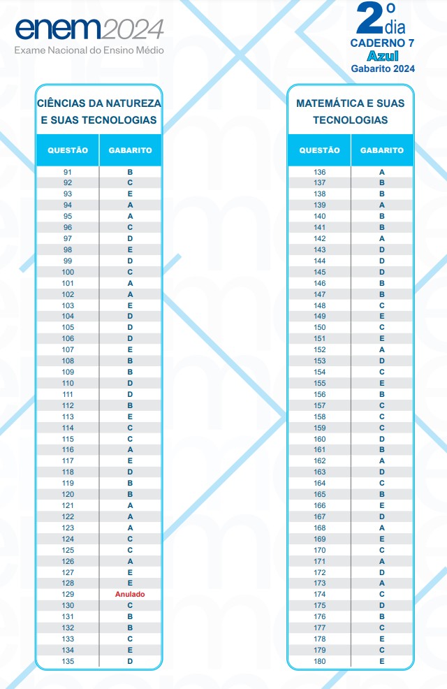 Gabarito do Enem 2024 – 2º dia – caderno azul — Foto: Reprodução
