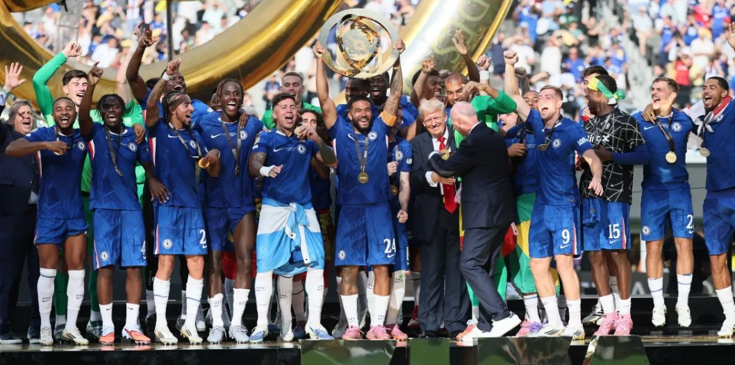 O mandatário acompanhou a vitória do Chelsea sobre o Paris Saint-Germain por 3 a 0 pela final da Copa do Mundo de Clubes.